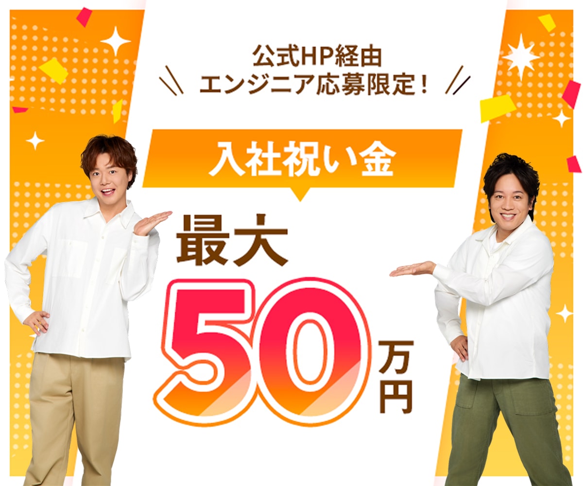 このたび、もっとたくさんのエンジニアを迎え入れるべく、HALホームページよりエンジニア職へご応募いただいた方を対象に入社祝い金を支給する制度を開始いたしました。